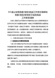 XX县公安局党委(党组)统战工作责任清单和党委(党组)领导班子成员统战工作职责清单.docx