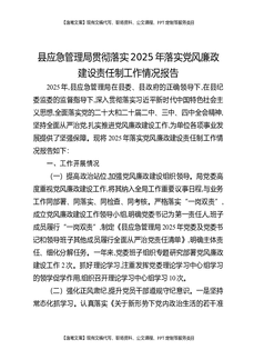 县应急管理局贯彻落实2025年落实党风廉政建设责任制工作情况报告.docx