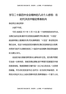 学习贯彻二十届四中全会精神个人感悟:在时代洪流中锚定青春航向.docx