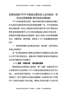 区委统战部2025年度党政主要负责人述法报告:筑牢法治思维根基,提升统战治理效能.docx
