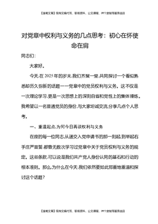 对党章中权利与义务的几点思考:初心在怀使命在肩.docx