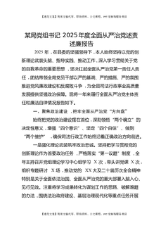 某局党组书记2025年度全面从严治党述责述廉报告.docx