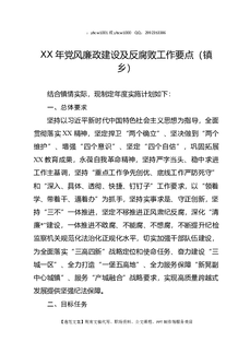 XX年党风廉政建设及反腐败工作要点(镇乡).docx