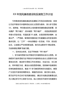XX年党风廉政建设和反腐败工作计划.docx