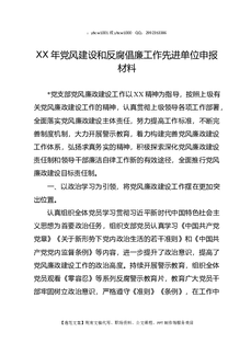 XX年党风建设和反腐倡廉工作先进单位申报材料.docx