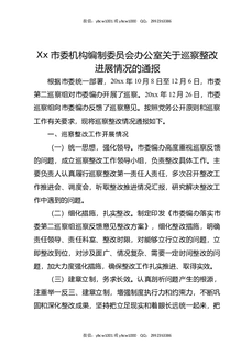 XX市委机构编制委员会办公室关于巡察整改进展情况的通报.docx