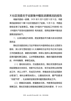 X社区党委关于巡察集中整改进展情况的报告.docx