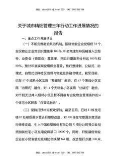 关于城市精细管理三年行动工作进展情况的报告.docx