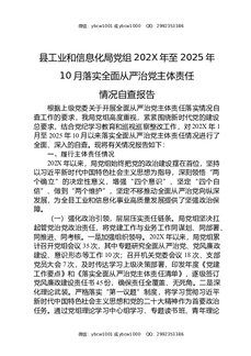 县工业和信息化局党组202X年至2025年10月落实全面从严治党主体责任情况自查报告.docx