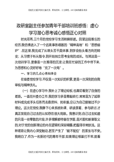 政研室副主任参加青年干部培训班感悟:虚心学习潜心思考诚心感悟正心对照.docx