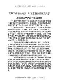 组织工作经验交流:以巡察整改监督为抓手,推动全面从严治党向基层延伸.docx