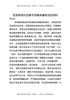 区财政局元旦春节前集体廉政谈话材料.docx