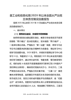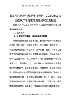 县工业和信息化局党委(党组)202X年以来全面从严治党主体责任情况自查报告.docx