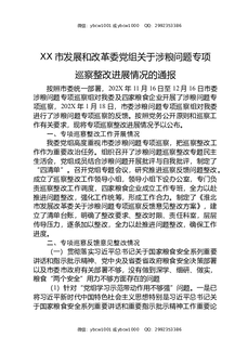 XX市发展和改革委党组关于涉粮问题专项巡察整改进展情况的通报.docx