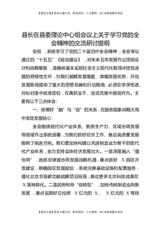 县长在县委理论中心组会议上关于学习党的全会精神的交流研讨提纲.docx