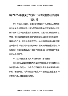 镇2025年度关于发展壮大村级集体经济的经验材料.docx