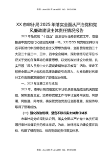 XX市审计局2025年落实全面从严治党和党风廉政建设主体责任情况报告.docx