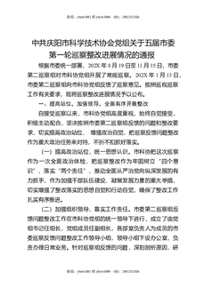 XX市科学技术协会党组关于五届市委第一轮巡察整改进展情况的通报.docx