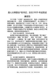 县人大常委会党组书记、主任2025年述责述廉报告.docx