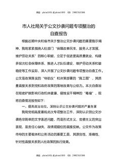 市人社局关于公文抄袭问题专项整治的自查报告.docx