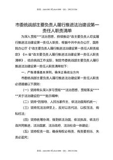 市委统战部主要负责人履行推进法治建设第一责任人职责清单.docx