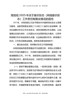 局党组2025年关于意识形态(网络意识形态)工作责任制落实情况的报告.docx