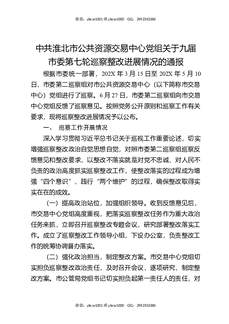 市公共资源交易中心党组关于九届市委第七轮巡察整改进展情况的通报.docx