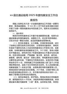 XX县交通运输局2025年度档案安全工作自查报告.docx