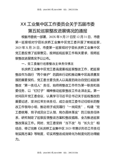 XX工业集中区工作委员会关于五届市委第五轮巡察整改进展情况的通报.docx