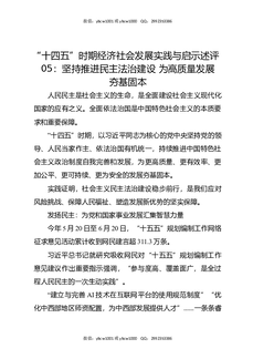 “十四五”时期经济社会发展实践与启示述评05:坚持推进民主法治建设,为高质量发展夯基固本.docx