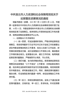 市人力资源和社会保障局党组关于巡察整改进展情况的通报.docx