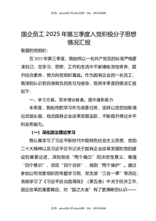 国企员工2025年第三季度入党积极分子思想情况汇报.docx