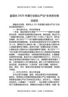 副县长2025年履行全面从严治党主体责任情况报告.docx