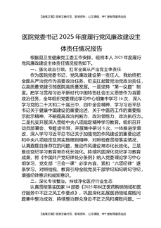 医院党委书记2025年度履行党风廉政建设主体责任情况报告.docx