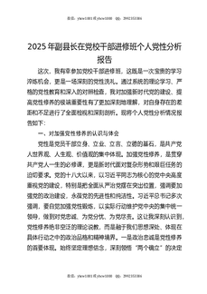 2025年副县长在党校干部进修班个人党性分析报告.docx