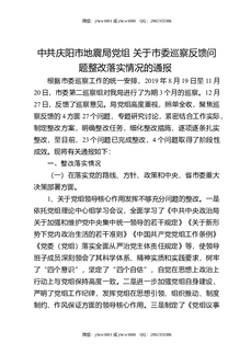 XX市地震局党组关于市委巡察反馈问题整改落实情况的通报.docx