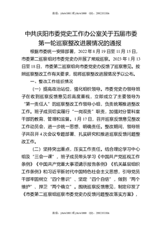 XX市委党史工作办公室关于五届市委第一轮巡察整改进展情况的通报.docx