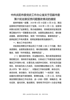XX市委党史工作办公室关于四届市委第六轮巡察反馈问题整改情况的通报.docx