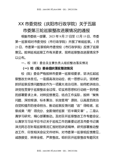 XX市委党校(市行政学院)关于五届市委第三轮巡察整改进展情况的通报.docx