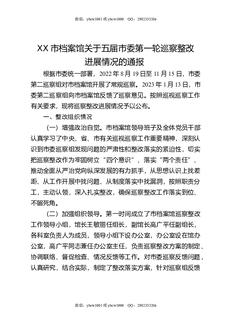 XX市档案馆关于五届市委第一轮巡察整改进展情况的通报.docx
