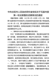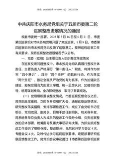 市人民政府研究室党组关于五届市委第一轮巡察整改进展情况的通报.docx