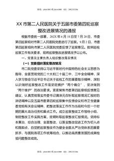 XX市第二人民医院关于五届市委第四轮巡察整改进展情况的通报.docx