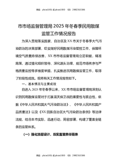 市市场监督管理局2025年冬春季民用散煤监管工作情况报告.docx