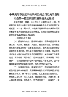市民族宗教事务委员会党组关于五届市委第一轮巡察整改进展情况的通报.docx