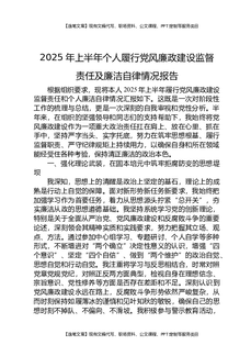 2025年上半年个人履行党风廉政建设监督责任及廉洁自律情况报告.docx