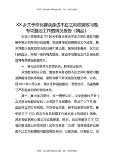 XX乡关于深化群众身边不正之风和腐败问题专项整治工作的情况报告(精品).docx