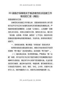 XX县医疗保障局关于推进模范机关创建工作情况的汇报(精品).docx