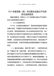 2025年度党委(组)书记落实全面从严治党责任述职报告