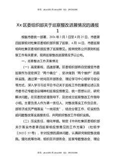 XX区委组织部关于巡察整改进展情况的通报.docx