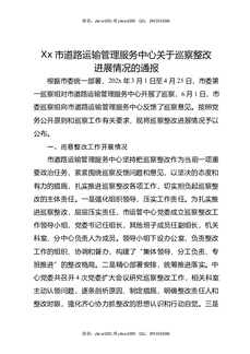 XX市道路运输管理服务中心关于巡察整改进展情况的通报.docx